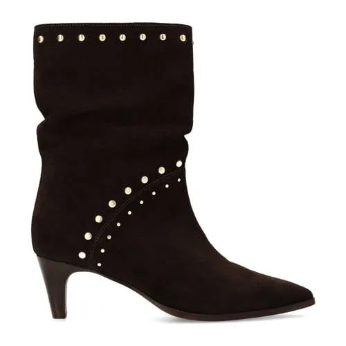 Manfield - Dames - Donkerbruine sude enkellaarsjes met studs -...