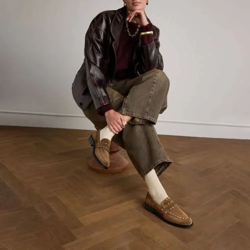 - De laagste prijs van Manfield - Dames - Bruine sude loafers met goudkleurige studs - Maat 36 werd gevonden op 23 april 2026 17:54.