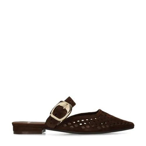 Stap ontspannen de dag in met dit Manfield muiltje voor dames in een warme bruine kleur. De sandalen hebben een subtiel geruit detail op de band, wat voor een verfijnde en moderne uitstraling zorgt. Door de platte hak van 2 cm loop je de hele dag stabiel en comfortabel, zonder in te leveren op stijl.Comfort en details die opvallen Buitenkant van suède, voor een zachte en rijke uitstraling Leren voering die soepel meebeweegt met je voet Platte hak van 2 cm voor een ontspannen loopgevoel Goudkleurige gespsluiting voor een elegante afwerking Normale leest, geschikt voor de meeste voetvormen Comfortabele hakvorm, ideaal voor dagelijks gebruikVoor zomerse dagen en avondjes uitDeze bruine sandalen van suède passen net zo makkelijk bij een luchtige zomerjurk als bij een jeans of linnen broek. De open vorm laat je voeten ademen op warme dagen, terwijl de verstelbare gesp zorgt dat alles stevig en prettig blijft zitten, ook als je veel loopt.Manfield: stijlvol en vertrouwdManfield staat bekend om schoenen met aandacht voor pasvorm, materiaal en afwerking. Elke collectie combineert tijdloze stijl met actuele trends, waardoor je kiest voor schoenen die lang mooi blijven en prettig dragen.Een veelzijdig muiltje dat jouw dagelijkse outfits op een rustige, stijlvolle manier compleet maakt.