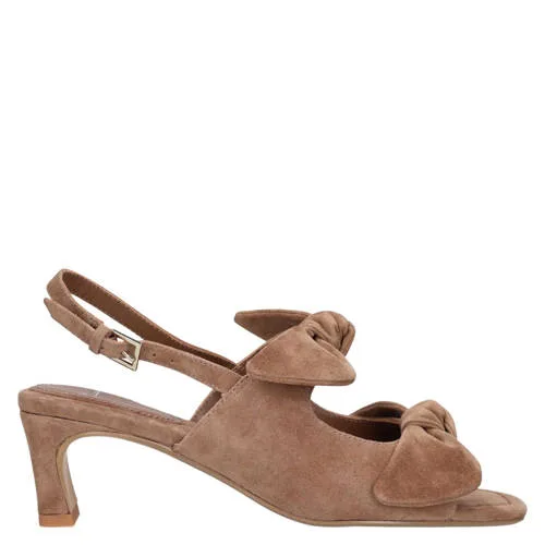 Manfield suède sandalettes met strikjes lichtbruin