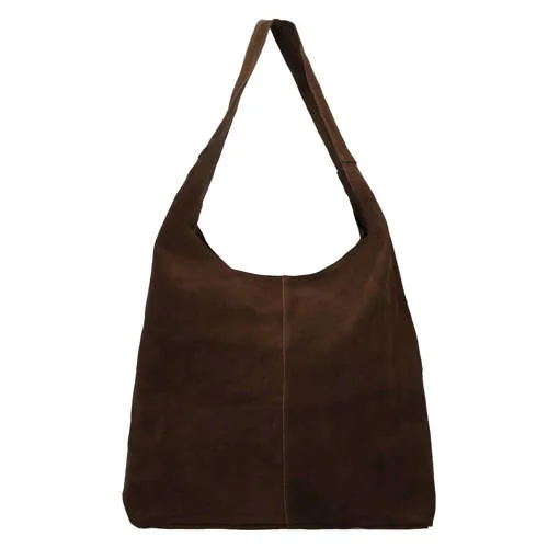 Manfield suède schoudertas donkerbruin
