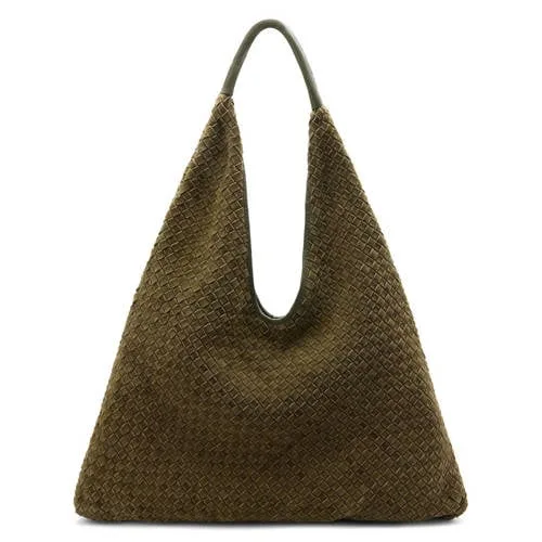 Manfield suede schoudertas kaki