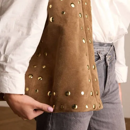 Manfield suede schoudertas met studs cognac