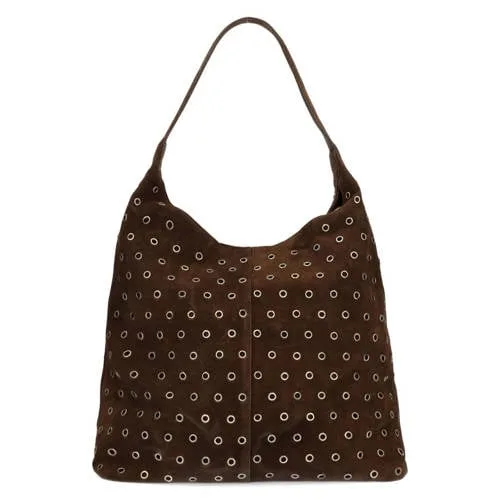 Manfield suede schoudertas met studs donkerbruin Prijzen