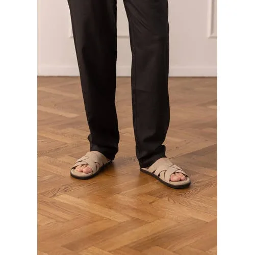 Zoek je luchtige schoenen die er verzorgd uitzien en comfortabel lopen, dan zijn deze beige suède gevlochten heren slippers van Manfield een praktische keuze. De brede, gevlochten banden over de wreef geven een rustige, moderne uitstraling en houden de voet prettig op zijn plek. Door de neutrale beige kleur combineer je ze eenvoudig met je dagelijkse garderobe, van korte broek tot linnen pantalon.Kenmerken van de gevlochten slippers Gemaakt van zacht suède aan de buitenkant voor een soepele, comfortabele feel Gevlochten banden over de voorvoet zorgen voor een stevige pasvorm Leren voering en binnenzool van suède voor een aangenaam voetklimaat Leren buitenzool voor een verzorgde afwerking en een nette uitstraling Platte zool met hoogte van 2 cm, ideaal voor dagelijks gebruik Normale leest, passend bij de meeste voettypen Effen beige kleur, makkelijk te combineren met veel outfitsComfortabel in en om het huisDeze slippers zijn geschikt voor allerlei momenten op de dag. Draag ze thuis, naar het terras of tijdens een ontspannen wandeling door de stad. De lage, platte zool loopt licht, terwijl het suède zich prettig rond je voet vormt. Voor het behoud van de kleur en de kwaliteit van het suède is een transparante suède/nubuck spray als bescherming aan te raden.Manfield als vertrouwde schoenspecialistManfield staat al jaren bekend om stijlvolle schoenen voor elke dag, met aandacht voor materiaal en afwerking. In de collectie worden tijdloze modellen gecombineerd met actuele trends, zodat je altijd iets vindt dat past bij je persoonlijke stijl. Deze slippers sluiten daar naadloos op aan, met een rustige look en degelijke materialen.Een comfortabele keuze voor dagen waarop je graag licht en verzorgd op pad gaat.