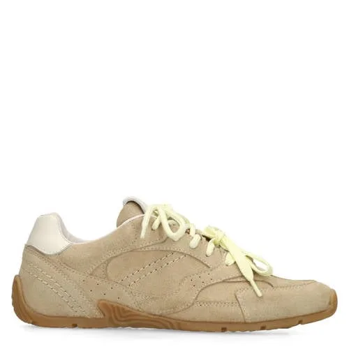 Manfield Dames Beige suede sneakers met dubbele vetersluiting