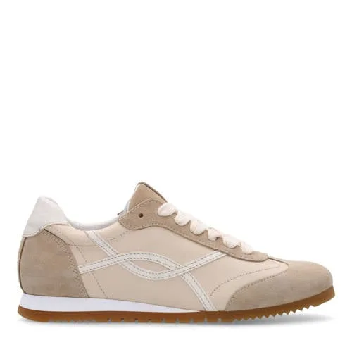 Manfield Dames Witte creme leren sneakers met beige suede details