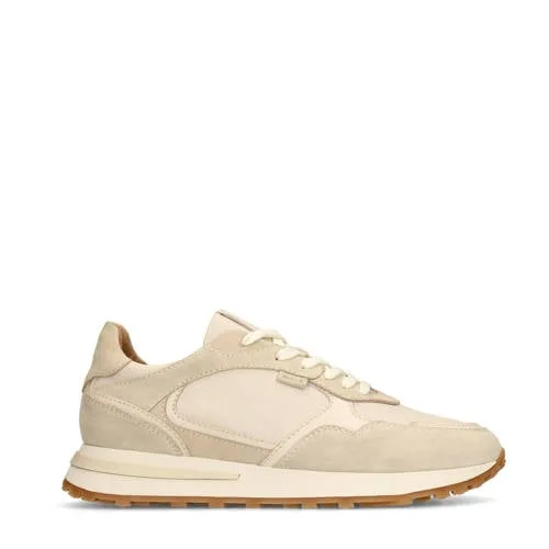 Manfield - Heren - Beige leren sneakers met sude details...