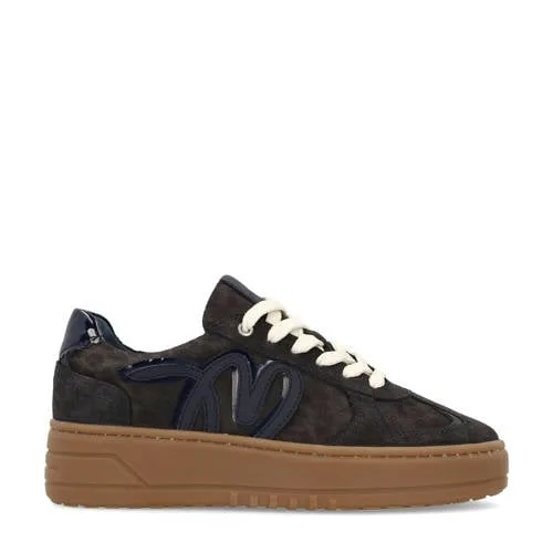 Deze sneaker van Manfield heeft een buitenkant van suède en een voering van leer. De schoen heeft een plateauzool en een vetersluiting, zo loop je prettig en stijlvol door de dag.