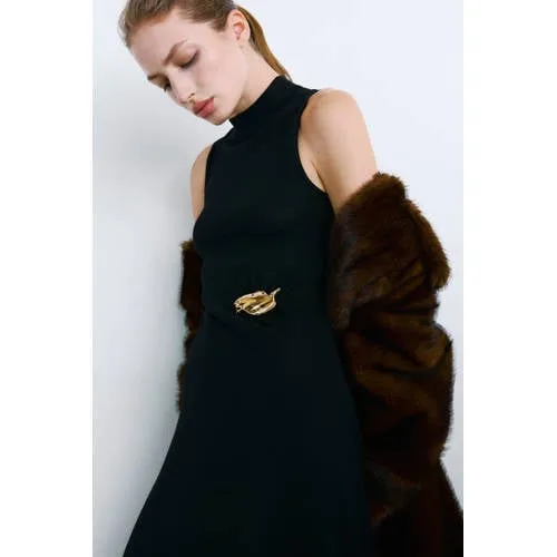 Deze Mango zwarte lange coljurk is een moderne basis voor uiteenlopende gelegenheden. De jurk heeft een lange lengte en een A lijn pasvorm die soepel langs het lichaam valt. De hoge col geeft een rustige, gestroomlijnde look, terwijl de mouwloze snit ruimte biedt om te combineren met een blazer of vest. Het polyester is vormvast en behoudt zijn structuur, ook na veelvuldig dragen.Stijlvolle details in een tijdloos ontwerp Lange maxi jurk met A lijn voor een vloeiend silhouet Mouwloos model met rechte armlijnen voor een nette afwerking Hoge col voor een moderne, gesloten halslijn Effen zwarte kleur die zich makkelijk laat combineren Geen sluiting voor snel en eenvoudig aankleden Subtiele 3D applicatie als verfijnd detail in het ontwerp Geen zakken voor een gladde, strakke uitstralingVeelzijdig in elke settingMet deze lange coljurk ontstaat eenvoudig een geklede look voor werk, diner of feestelijk moment. In combinatie met hakken of laarzen en een korte jas of lange mantel past de jurk zich moeiteloos aan het seizoen aan.Mango als vertrouwd modelabelMango staat voor eigentijdse mode met aandacht voor pasvorm en draagcomfort. Het merk biedt collecties die aansluiten bij actuele trends en toch toegankelijk blijven. Door te kiezen voor Mango kies je voor kleding met een doordacht ontwerp en een consistente kwaliteit.Een doordachte keuze voor dagen waarop een verzorgde, rustige stijl centraal mag staan.