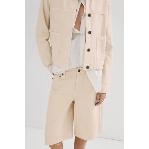 Voor een ontspannen denimlook die toch verzorgd oogt is deze zandkleurige baggy jeans bermuda voor dames een toegankelijke keuze. De denimachtige katoenen stof voelt stevig maar soepel aan en geeft de korte broek een nonchalante fit. De zandkleur maakt het een veelzijdige basic die gemakkelijk combineert met je favoriete T-shirt, blouse of top.Denimdetails in een zomerse bermuda Gemaakt van 100% katoen voor een natuurlijke, ademende feel Denimachtige stof met rechte snit voor een relaxed silhouet Low-rise taille met riemlussen voor een persoonlijke pasvorm met of zonder riem Klassieke 5-pocket stijl met twee achterzakken, twee steekzakken en een muntzakje Rits- en knoopsluiting aan de voorkant voor praktisch dagelijks gebruik Middellange lengte voor een bermuda-look in een zachte zandkleur Effen ontwerp zonder slijtage details voor een rustige, tijdloze uitstralingCasual dagelijks draagmomentDeze baggy jeans bermuda past goed in je dagelijkse garderobe. Ideaal voor een vrije dag, een wandeling door de stad of een casual afspraak. Met sneakers en een losvallend T-shirt ontstaat een ontspannen look, terwijl een luchtige blouse en sandalen zorgen voor een wat meer geklede combinatie.Mango: moderne stijl voor elke dagMango staat bekend om eigentijdse collecties waarin trends en draagbaarheid samenkomen. De focus ligt op toegankelijke mode met een moderne uitstraling en doordachte pasvormen. Met deze jeans bermuda haal je een betrouwbaar basisstuk in huis dat mooi aansluit bij de rest van de collectie.Een comfortabele, sandkleurige basis die je garderobe op een subtiele manier verfrist.