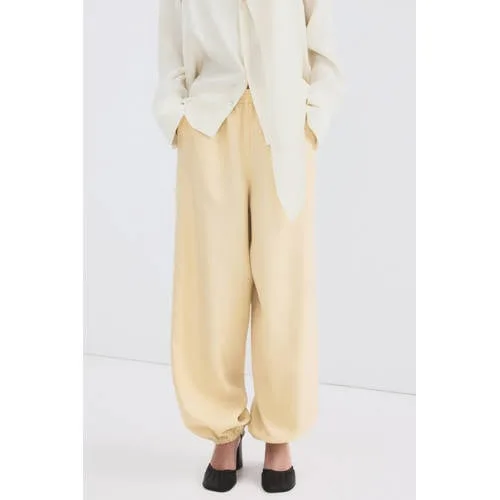 Geef je dagelijkse look een ontspannen update met deze lichtgele Mango pantalon. De broek heeft een luchtige ballonvorm en lange pijpen met elastiek aan de onderkant, waardoor er een nonchalant silhouet ontstaat dat toch verzorgd oogt. De soepele stof van lyocellmix voelt zacht aan op de huid en valt mooi om het lichaam, ideaal voor lentedagen en frisse zomeravonden.Luchtige pasvorm met comfortabele details Baggy pasvorm met ballonontwerp voor een relaxed en eigentijds silhouet Middelhoge taille die prettig rond de heupen valt Elastische tailleband voor makkelijk aan- en uittrekken en extra comfort Lange pijpen met elastische boorden zodat de broek mooi op de enkel blijft zitten Bestaat uit lyocell, viscose, linnen en katoen voor een soepele, luchtige touch Zijzakken voor het wegstoppen van kleine essentials Effen lichtgele kleur die makkelijk te combineren is met basic T-shirts en tops Met katoenen voering voor een prettig draaggevoelCasual broek voor elke dagDeze pantalon past goed in een dagelijkse garderobe. Combineer met een eenvoudig T-shirt en sneakers voor een relaxte daglook, of draag er een nette blouse en sandalen bij als je iets gekleder wilt verschijnen. De elastische taille maakt de broek ook fijn voor thuiswerken of een dagje uit.Mango als moderne stijlgidsMango staat bekend om modieuze kleding met een toegankelijke uitstraling. De collecties volgen de trends, maar blijven draagbaar voor elke dag. Met deze pantalon haal je een stijlvol basisstuk in huis dat past bij een moderne, veelzijdige garderobe.Een comfortabele keuze voor dagen waarop je er verzorgd uit wilt zien zonder in te leveren op gemak.