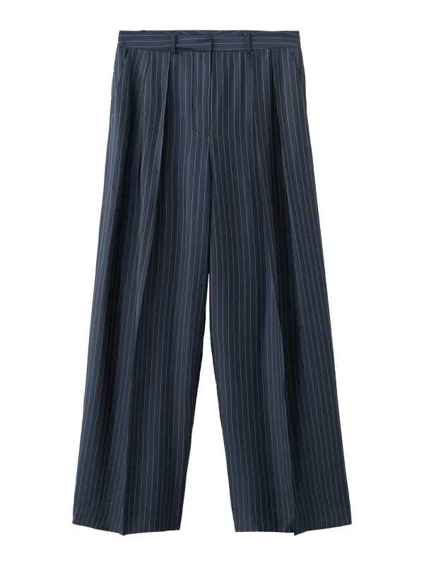 Mango wide leg regularwaist broek met krijtstreep marineblauw