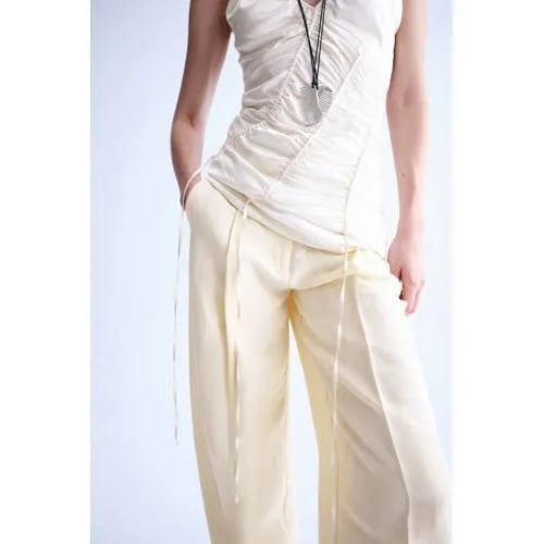 Breng kleur in je garderobe met deze lichtgele dames pantalon van Mango. De lange broek heeft een modern ballonontwerp met barrel fit, wat zorgt voor een losser silhouet rond het been en een smalle aansluiting bij de zoom. De middelhoge taille met riemlussen maakt het makkelijk om je favoriete riem toe te voegen en de plooidetails aan de voorkant geven een verzorgde, nette uitstraling. De satijnen onderzijde voegt een subtiele glans toe voor een verfijnde look.Verfijnde details voor elke dag Ballon- en barrelontwerp voor een eigentijds silhouet Middelhoge taille met riemlussen voor een stabiele en comfortabele fit Twee zijzakken voor ruimte aan kleine essentials Blinde knoop-, haak- en ritssluiting voor een rustige, nette voorkant Gemaakt van 68% viscose en 32% hennep, met een voering van 100% viscose Satijnen onderzijde die zorgt voor een zachte touch en lichte glans Effen lichtgele kleur, eenvoudig te combineren met tops in neutrale of juist opvallende tintenGeschikt voor werk, stadswandeling en dinerDeze lange broek uit de Daily collectie is ideaal voor dagen waarop je er verzorgd uit wilt zien zonder in te leveren op gemak. Combineer met een eenvoudige top en sneakers voor een ontspannen look of draag een blouse en hakken voor een meer geklede stijl.Mango selection: moderne stijl met aandacht voor detailMango staat bekend om mode die trends volgt en toch draagbaar blijft in het dagelijks leven. Binnen de Selection collectie ligt de nadruk op verfijnde afwerking, doordachte pasvormen en materialen die prettig aanvoelen. Zo voeg je makkelijk stijlvolle stukken toe aan je garderobe waar je vaak naar grijpt.Een frisse, lichtgele basis die je outfits meteen een moderne en zorgvuldige uitstraling geeft.