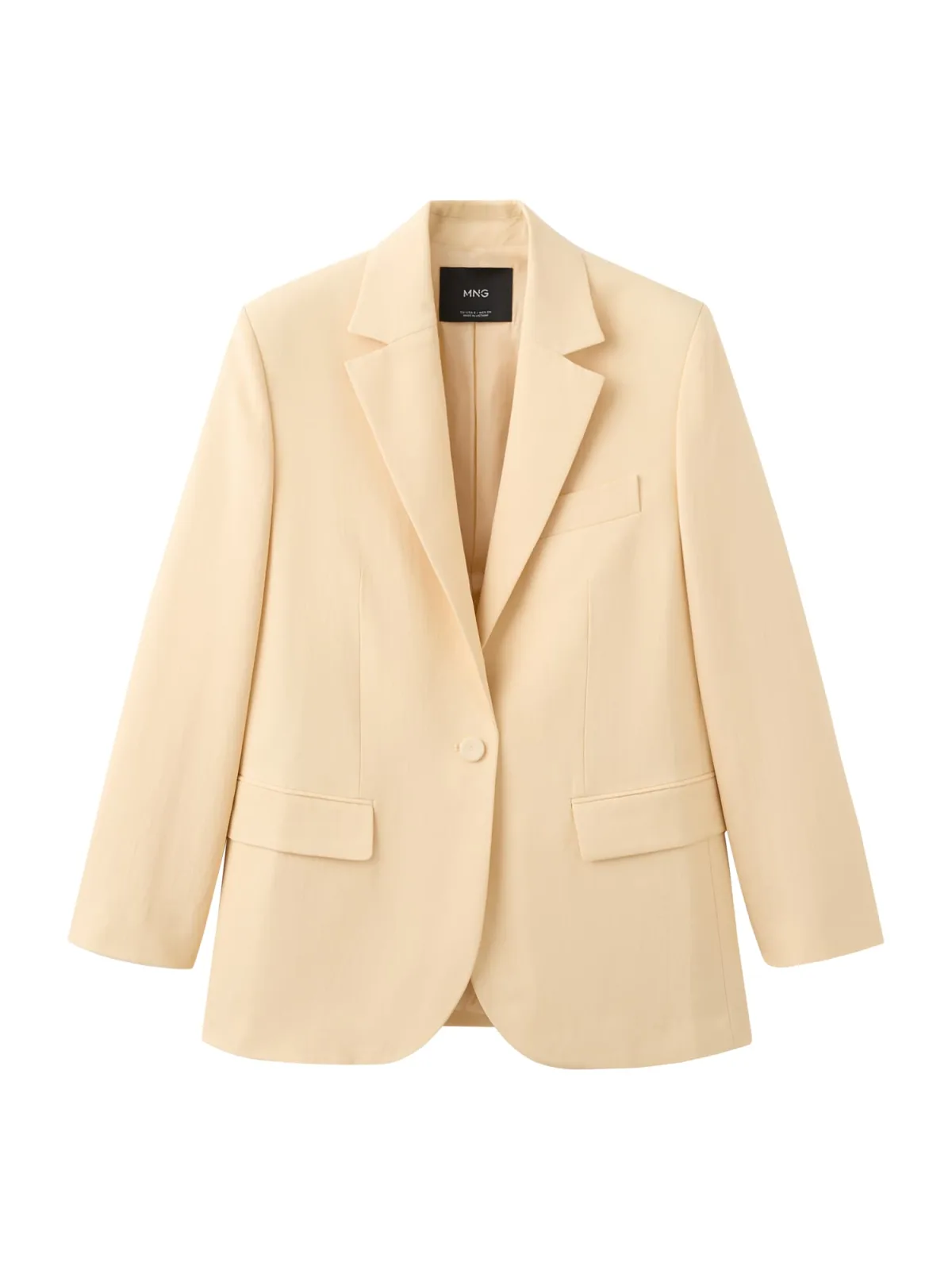 Deze lichtgele oversized blazer voor dames van Mango is een lichte laag voor dagen waarop je net iets meer aankleding wilt, zonder dat het zwaar aanvoelt. De mix van linnen, lyocell en viscose geeft een luchtig karakter dat goed past bij het voorjaar en warme dagen. De V-hals met ingesneden revers en de borstzak met bies zorgen voor een verzorgde uitstraling, terwijl de langere, ruimere pasvorm relaxed oogt.Details die het verschil maken Linnen, lyocell en viscose mix, voelt licht en luchtig aan Oversized model met rechte mouwen voor een ontspannen silhouet V-hals met ingesneden reverskraag voor een klassieke blazerlook Lange mouwen met knoopmanchetten voor een nette afwerking Voorsluiting met knopen zodat je de blazer open of gesloten kunt dragen Twee klepzakken en een borstzak met bies als subtiele sierdetails Effen lichtgele kleur die gemakkelijk combineert met neutrale en donkere tinten Gevoerde binnenkant voor een soepel gevoel bij het aantrekkenVan werkdag tot vrije tijdDeze blazer komt goed tot zijn recht over een basic T-shirt met een jeans voor een casual look. Voor een meer zakelijke combinatie draag je hem over een top met een nette broek of een aansluitende rok. De lichtgele kleur geeft direct een frisse noot aan je dagelijkse garderobe.Mango: eigentijdse mode voor elke dagMango staat bekend om collecties die inspelen op actuele trends en tegelijk draagbaar blijven voor alledaagse momenten. De ontwerpen combineren heldere lijnen met doordachte details, zodat je met weinig moeite een complete outfit samenstelt die goed aanvoelt in het dagelijks leven.Een veelzijdige blazer die je makkelijk pakt wanneer je outfit net wat extra afwerking mag krijgen.