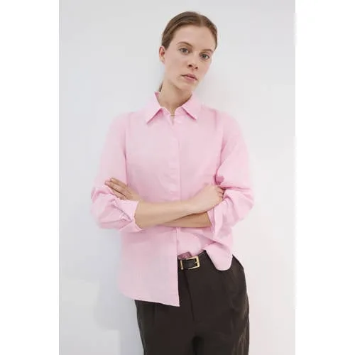 Deze roze linnen blouse voor dames van Mango is een lichte basic voor warme dagen. Het rechte model valt soepel langs je lichaam en geeft een ontspannen, nette look. De overhemdkraag en knoopsluiting aan de voorkant zorgen voor een verzorgde uitstraling, terwijl de lange mouwen met knoopmanchetten het model veelzijdig maken. Gemaakt van 100% linnen voelt de stof luchtig aan en is deze geschikt voor zomerse temperaturen.Details die het verschil maken Gemaakt van 100% linnen, een luchtige stof die fijn aanvoelt op de huid Rechte snit voor een ontspannen silhouet dat niet strak aansluit Overhemdkraag en knoopsluiting aan de voorkant voor een tijdloze look Lange mouwen met knoopmanchetten, makkelijk op te rollen voor een meer casual effect Effen roze kleur, eenvoudig te combineren met je bestaande garderobe Geen borstzakken voor een rustige en cleane voorkantGemakkelijk te stylen in het dagelijks levenDeze blouse past bij veel momenten op een dag. Combineer met een lichte jeans of linnen broek voor een zomerse outfit, of draag haar in een nette pantalon voor een meer geklede look. De rechte mouwen kun je los dragen of opstropen voor een iets speelsere stijl.Mango: eigentijdse stijl voor elke dagMango staat bekend om mode met een moderne, toegankelijke uitstraling. De collecties volgen de trends, maar blijven tegelijk draagbaar en praktisch in het dagelijks leven. Met deze blouse haal je een item in huis dat past binnen die filosofie van stijlvol en doordacht design.Een luchtige keuze die je zomergarderobe rustig en tegelijk verzorgd aanvult.
