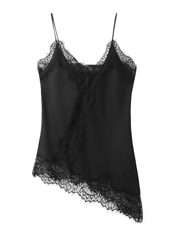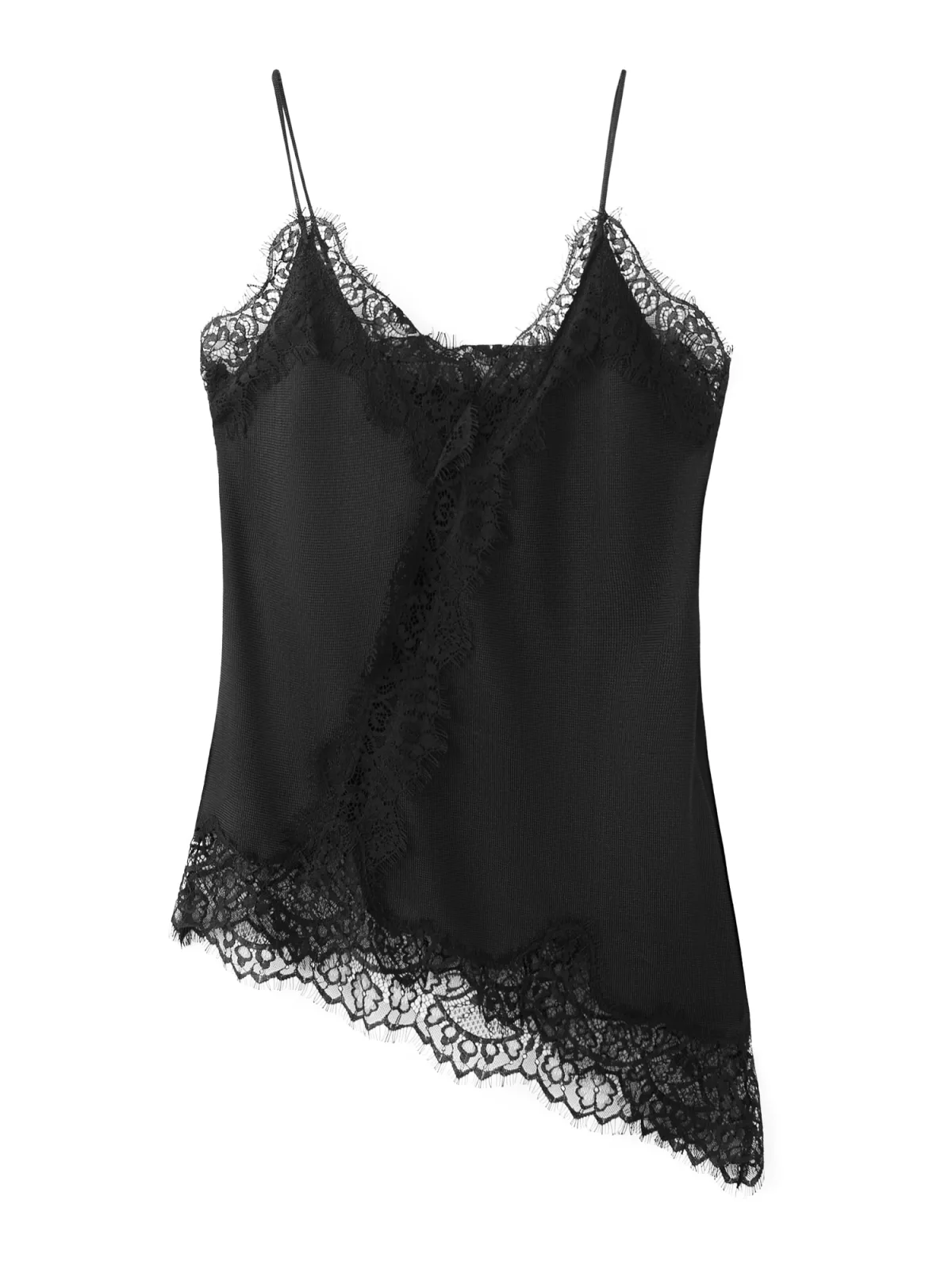 Blouse type: Blouseshirt; Design: Asymmetrische zoom, Geschulpte zoom; Motief: Effen; Kraag: Zonder kraag; Details: Franjes, Kant; Extra's: Licht transparant, Op staal naden; Pasvorm: Normale pasvorm; Armlengte: Mouwloos; Lengte: Normale lengte