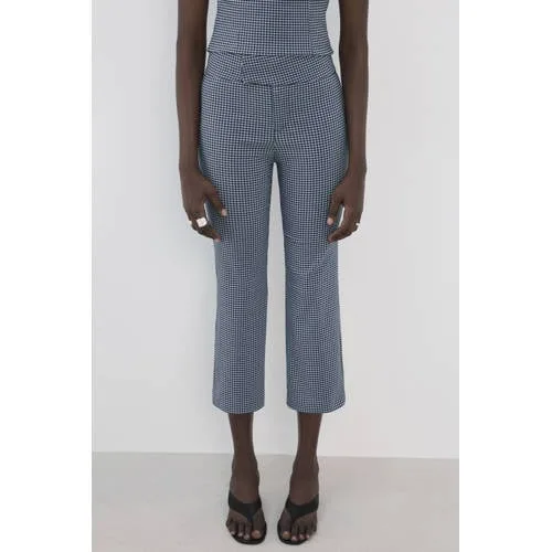 Mango bootcut high waist geruite broek blauw Prijzen