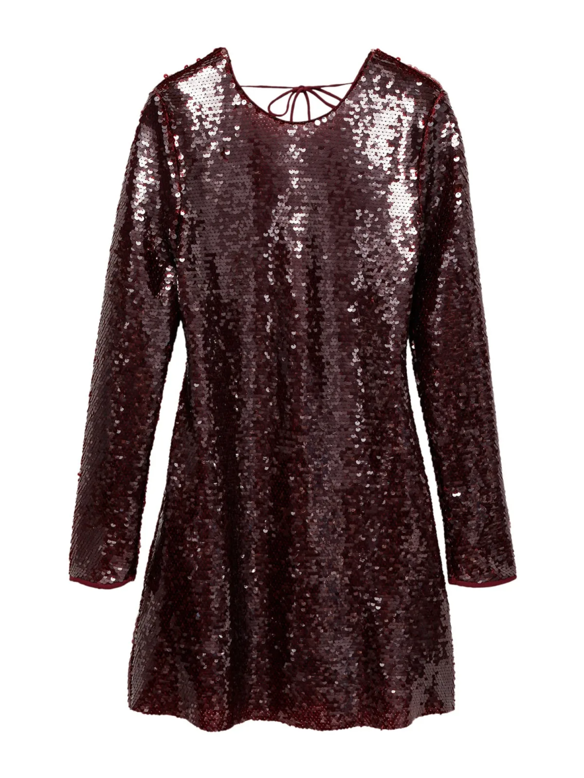 Design: Gevoerde zoom/rand, Om te knopen/binden, Uitgesneden rug; Halstype: Ronde hals; Motief: Effen; Details: Pailletten; Extra's: Glanzend, Gladde stof; Lengte: Kort/mini; Snit: Uitlopend; Pasvorm: Normale pasvorm; Armlengte: Lange mouw