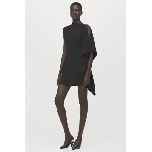 Voor een moderne partylook met een duidelijke lijn is deze Mango zwarte off shoulder jurk een praktische keuze. Het korte, getailleerde ontwerp volgt subtiel je silhouet, terwijl de off shoulder halslijn en asymmetrische mouwen zorgen voor een herkenbaar detail. De effen zwarte kleur maakt de jurk geschikt voor verschillende feestelijke momenten, van een cocktailavond tot een formeel evenement.Details die het verschil maken Kort ontwerp met getailleerde pasvorm voor een aansluitende lijn rond het lichaam Off shoulder halslijn met nauwsluitende afwerking voor een moderne uitstraling Asymmetrische korte mouwen en knoopdetail als extra aandachtspunt Effen zwarte kleur, geschikt voor diverse soorten schoenen en accessoires Gemaakt van polyester, een vormvaste stof die mooi blijft vallen Zijritssluiting, bijna onzichtbaar weggewerkt voor een rustig totaalbeeld Geen zakken, waardoor de jurk glad langs het lichaam valt Exclusief online verkrijgbaar als onderdeel van de feest- en evenementencollectieKlaar voor avond, cocktail of eventDeze korte jurk leent zich voor uiteenlopende gelegenheden waarbij je extra aandacht geeft aan je outfit. De lengte en het aansluitende model maken de jurk passend voor zowel diners als dansavonden, van een informeel feest tot een meer formele setting.Mango: eigentijdse mode voor speciale momentenMango staat voor mode met een moderne uitstraling en heldere lijnen. De feest- en evenementencollectie is ontworpen met aandacht voor pasvorm, stofkeuze en details, zodat je kiest voor kleding die goed aansluit en verzorgd oogt. Zo biedt Mango opties voor iedere gelegenheid, van dagelijkse outfits tot bijzondere avonden.Een compacte, zwartkleurige jurk die je garderobe klaar maakt voor speciale momenten.