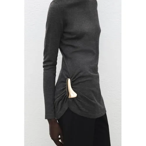 Design: Geribbelde kraag, Rechte zoom, Geribd ceintuurtje; Materiaal: Knitwear; Halstype: Col; Motief: Mélange; Details: Gedrapeerd; Extra's: Applicaties, Met textuur, Voelt zacht aan; Pasvorm: Normale pasvorm; Armlengte: Lange mouw; Lengte: Lange pasvorm