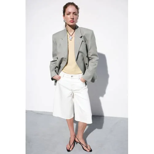 Mango denim wide leg regular waist bermuda short ecru Prijzen