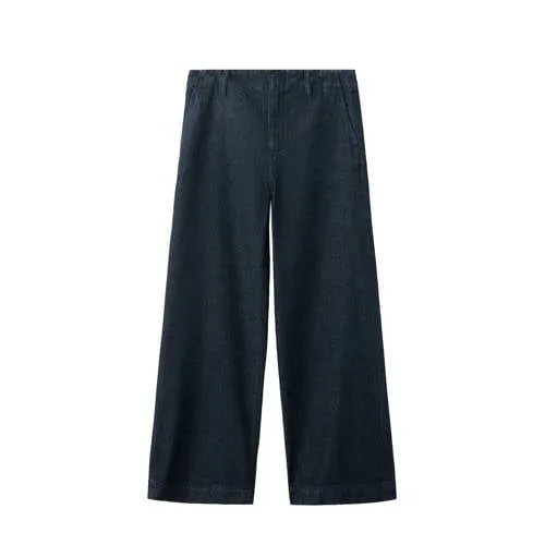 Mango denim wide leg regular waist broek dark blue denim
