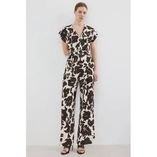 Deze luchtige dames jumpsuit met bloemenprint van Mango is handig als je graag in één keer klaar bent. De rechte snit en het lange ontwerp zorgen voor een elegante lijn, terwijl de ecru/bruine bloemenprint je outfit een zachte, frisse uitstraling geeft. In de taille zit een riemdetail dat je silhouet subtiel accentueert en zorgt voor een vrouwelijke vorm.Verfijnde details voor elke dag Rechte pasvorm met lang ontwerp voor een rustig en stijlvol silhouet Ecru/bruin met bloemenprint voor een zachte, rustige look V-hals en kapmouwen die mooi langs de schouders vallen Ceintuur en riemlussen in de taille voor een aansluitende pasvorm Ritssluiting aan de achterkant voor een nette afwerking Met binnenvoering voor extra draagcomfort Zijzakken die handig zijn zonder op te vallen in het ontwerp Materiaal met viscose dat soepel langs het lichaam valtVan lenteborrel tot bruiloftsgastDeze jumpsuit past goed bij lichte lenteschoenen, een sandaal met hak of een nette slipper. Voor een bruiloft combineer je de jumpsuit eenvoudig met een kleine clutch en sieraden. Voor een dagelijkse look volstaat een eenvoudig tasje en een dun vest.Mango: eigentijdse stijlMango staat bekend om hedendaagse collecties met een toegankelijke stijl. De items sluiten goed aan bij het dagelijks leven, met aandacht voor pasvorm, materialen en details. Zo kun je de kleding langdurig dragen en blijft je outfit er verzorgd en modern uitzien.Een kledingstuk waarmee je eenvoudig een complete outfit samenstelt.