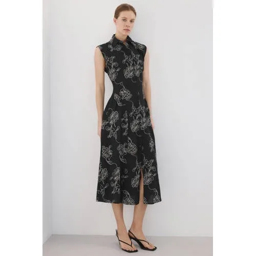 Deze mouwloze midi jurk met bloemenborduursel van Mango is een stijlvolle keuze voor je dagelijkse garderobe. De jurk heeft een recht ontwerp met een middellange lengte en valt soepel rond het lichaam. De zwarte basis met ecru borduursels zorgt voor een rustige, maar opvallende uitstraling die goed past bij het lenteseizoen.Kenmerken van de geborduurde midi jurk Met een VOERING van 100% KATOEN voor een fijn draaggevoel Recht model met midi ontwerp, ideaal als luchtige maar geklede optie Bloemenborduursel aan de buitenkant voor een verfijnd en speels detail Overhemdkraag en klassieke knoopsluiting aan de voorkant voor een nette uitstraling Mouwloos ontwerp met brede schouderbanden die prettig op de schouder liggen Binnenvoering voor extra comfort en minder doorschijnen Zwart / ecru kleurcombinatie die makkelijk te combineren is met basics in je kast Onderdeel van de 'Daily' collectie, geschikt voor alledaagse momentenVeelzijdig in het dagelijks levenDeze midi jurk draag je eenvoudig met sandalen of sneakers voor een ontspannen dag, of met een nette schoen voor een iets formelere gelegenheid. De klassieke kraag en knoopsluiting geven net genoeg structuur, terwijl het mouwloze ontwerp luchtig blijft.Mango: moderne stijl voor elke dagMango staat bekend om modieuze collecties met een toegankelijke uitstraling. De focus ligt op actuele trends die goed te combineren zijn met je bestaande garderobe. Met deze jurk kies je voor een doordacht ontwerp dat je vaak en met plezier kunt dragen.Een fijne keuze als je houdt van comfortabel, verzorgd en subtiel vrouwelijk in één midi jurk.