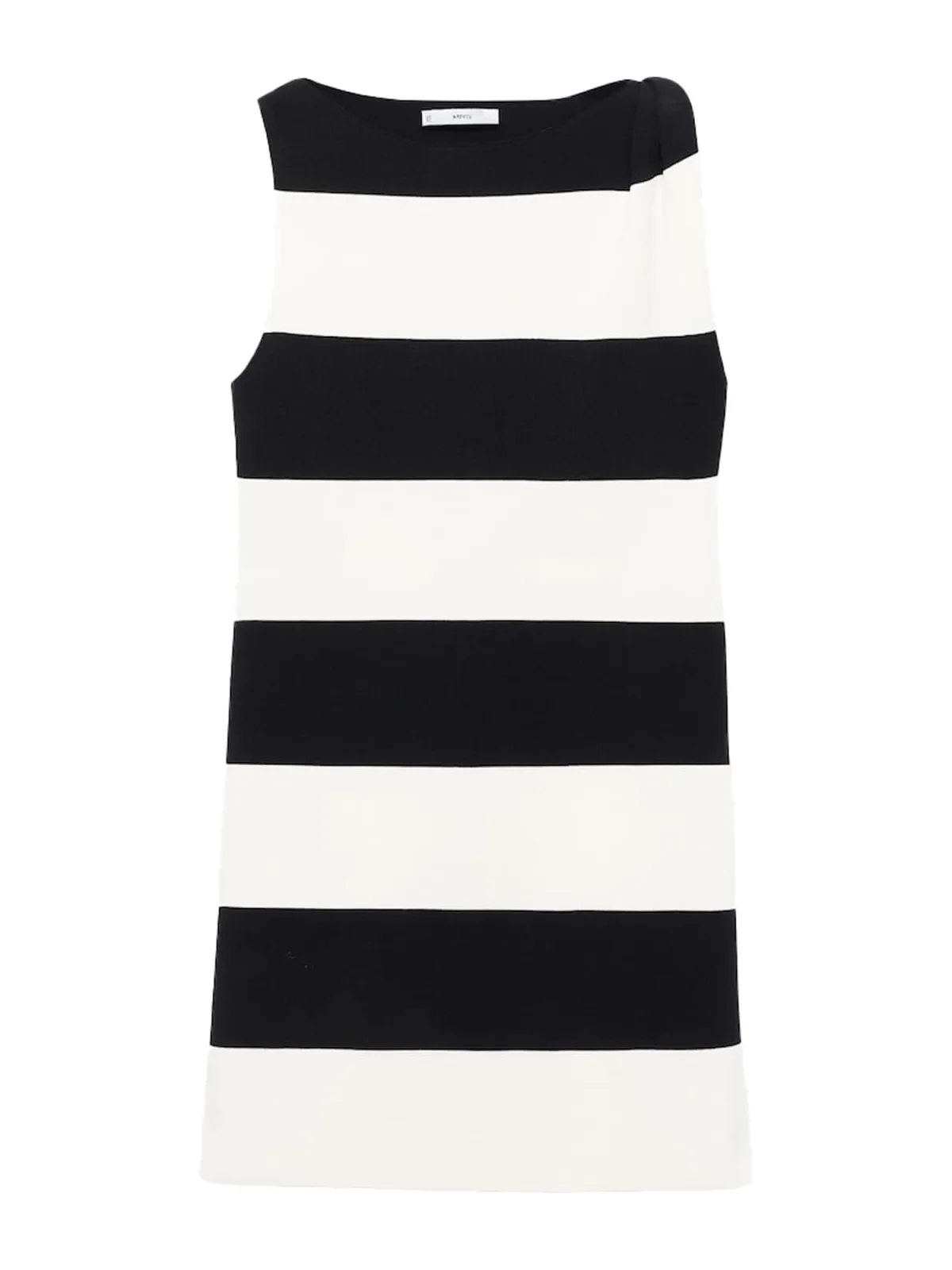 Design: Rechte zoom, Recht model; Materiaal: Knitwear; Halstype: Boothals; Motief: Gestreept; Soort bandjes: Brede bandjes; Details: Gedrapeerd; Extra's: All-over patroon, Met textuur, Voelt zacht aan; Lengte: Kort/mini; Snit: Recht; Pasvorm: Normale pasvorm; Armlengte: Mouwloos