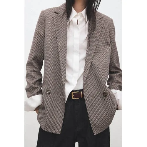 Deze Mango dames blazer ruit polyester brengt een verzorgde uitstraling in een paar eenvoudige stappen. De lange mouwen en klassieke reverskraag geven een nette basis, terwijl de ruitprint direct structuur toevoegt aan je outfit. De blazer sluit met een knoopsluiting aan de voorkant en heeft subtiele sierzakken die het ontwerp rustig houden. De combinatie van polyester, viscose en elastomeer zorgt voor een vormvaste pasvorm met lichte stretch, waardoor bewegen comfortabel blijft. De voering van polyester maakt dat de blazer soepel over je kleding glijdt.Stijlvolle details in het ontwerp Langemouw blazer met klassieke reverskraag Ruitprint voor een verzorgd en grafisch effect Knoopsluiting aan de voorkant voor een nette look Sierzakken voor een strak en opgeruimd voorpand Buitenkant gemaakt van 64 procent polyester, 34 procent viscose en 2 procent elastomeer Voering van 100 procent polyester voor extra draagcomfortVeelzijdig in dagelijks gebruikMet deze blazer voeg je eenvoudig een nette laag toe over een top of blouse. De ruitprint komt goed tot zijn recht op een effen basis en past bij zowel kantoorafspraken als een verzorgd moment in het weekend.Mango als moderne stijlgidsMango staat voor eigentijdse mode met heldere lijnen en draagbare ontwerpen. Het merk combineert actuele trends met vertrouwde pasvormen, zodat je gemakkelijk kledingstukken vindt die aansluiten bij je dagelijkse leven.Een blazer die rust en stijl samenbrengt in één doordacht ontwerp.
