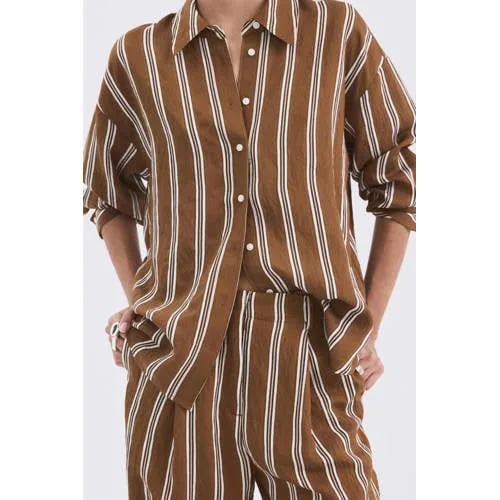 Mango gestreepte blouse bruin