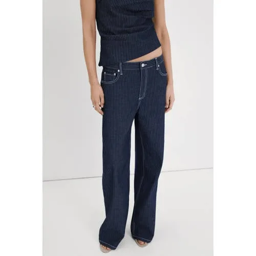 Mango gestreepte straight leg jeans medium blue denim