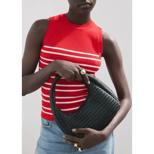 Deze gestreepte dames top van Mango is een basisstuk voor zonnige dagen. Het koraalrode en ecru streepdesign geeft direct een lichte, zomerse uitstraling. De top heeft een ronde hals en brede schouderbanden, wat zorgt voor een rustige, nette look die eenvoudig te combineren is. Door het elastische ontwerp sluit de top mooi aan op het lichaam zonder te knellen. Gemaakt van 72% viscose voelt de stof soepel en aangenaam aan op de huid. De standaardlengte maakt dit een draagbaar item voor elke dag in het voorjaar en de zomer.Belangrijkste kenmerken van deze gestreepte top Koraalrode en ecru strepen voor een lichte, casual look Elastisch ontwerp dat prettig meebeweegt met je lichaam Ronde hals voor een rustige, verzorgde uitstraling Brede schouderbanden voor extra comfort en nette bedekking Mouwloos model, geschikt voor warme lente- en zomerdagen Gemaakt van 72% viscose met een soepel en zacht gevoel Standaardlengte, makkelijk te dragen op een broek, rok of short Daily collectie, praktisch als basis in je alledaagse garderobeStyling voor elke dagDeze rood met ecru gestreepte top combineer je eenvoudig met een lichte jeans of een linnen broek voor een ontspannen daglook. Voor een nettere uitstraling draag je de top met een midi-rok en sandalen. Door het mouwloze model kun je de top ook goed gebruiken als laag onder een blazer of spijkerjack op koelere momenten.Mango: eigentijdse mode met een rustige stijlMango staat voor eigentijdse collecties met heldere lijnen en draagbare ontwerpen. De focus ligt op items die eenvoudig te combineren zijn en die meerdere seizoenen mee kunnen. Deze top sluit daar goed op aan, als veelzijdige basic die je in verschillende outfits kunt verwerken.Een praktische basis voor je lente- en zomergarderobe.