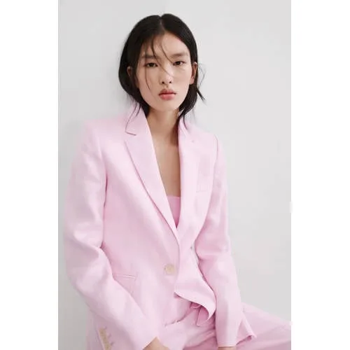 Geef je look een frisse zomerupdate met deze lichtroze linnen blazer voor dames van Mango. De rechte snit met elegante reverskraag en V-hals zorgt voor een verzorgde uitstraling, terwijl het luchtige materiaal fijn is op warmere dagen. Deze blazer maakt elke outfit direct netter, van werkdag tot feestelijke gelegenheid.Lichte blazer met doordachte details Gemaakt van 100% linnen, een ademende stof die prettig aanvoelt op de huid Voering van 100% katoen voor extra comfort aan de binnenkant Getailleerde pasvorm die het silhouet subtiel volgt Lange rechte mouwen met knoopmanchetten voor een nette afwerking Ingesneden revers en V-hals voor een klassieke, vrouwelijke look Twee paspelzakken aan de voorkant als sierdetail Achterste split voor meer bewegingsvrijheid bij het lopen en zitten Knoopsluiting aan de voorkant, gemakkelijk te openen en sluiten Onderdeel van een co-ord set of pak voor een compleet total look effect Lichtroze effen kleur, eenvoudig te combineren met neutrale en zachte tintenVan werkdag tot zomers feestDeze blazer past goed bij een bijpassende broek of short uit dezelfde set voor een compleet pak. Ook boven een eenvoudige top en een denim of nette pantalon komt de lichtroze kleur mooi tot zijn recht. Geschikt voor een zomerse werkdag, een etentje of een feestelijke gelegenheid.Mango: eigentijdse stijl voor elke dagMango staat bekend om moderne collecties met een vrouwelijke en stijlvolle uitstraling. De focus ligt op draagbare ontwerpen met aandacht voor pasvorm en details, zodat je er in het dagelijks leven verzorgd uitziet zonder moeite.Een lichte, zomerse blazer die je garderobe direct meer mogelijkheden geeft.