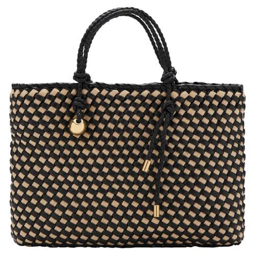 Voor een compacte tas die toch direct opvalt, is deze Mango handtas in zwart/naturel bedoeld voor momenten waarop je alleen het belangrijkste wilt meenemen. Het gevlochten ontwerp van stof met natuurlijke vezels geeft een lichte, zomerse uitstraling, terwijl de zwarte details en goudkleurige hardware zorgen voor een rustige, moderne look. Door het kleine formaat neem je makkelijk alleen mee wat je echt nodig hebt.Gevlochten design in handig klein formaat Gemaakt van 50% papier en 50% polyurethaan voor een stevige, maar toch lichte tas Gevlochten ontwerp in zwart/naturel voor een rustige, veelzijdige uitstraling Twee korte handvatten om de tas in de hand of aan je arm te dragen Zonder sluiting, zodat je snel bij je essentials kunt Klein formaat met een breedte van 25 cm, hoogte van 18 cm en diepte van 5 cm Goudkleurige hardware als subtiel detailIdeaal voor je dagelijkse momentenDeze kleine handtas past goed bij je dagelijkse outfits. Er is ruimte voor je telefoon, sleutels, pasjeshouder en een kleine beauty essential. Handig voor een koffie-afspraak, een snelle boodschap of een etentje waarbij je geen grote tas wilt meenemen.Mango: eigentijdse stijl voor elke dagMango staat bekend om mode met een moderne, toegankelijke uitstraling. De tassen sluiten aan bij de dagelijkse garderobe en volgen de trends op een rustige manier. Je kiest voor een artikel dat goed te combineren is met je favoriete basics en dat je vaak uit de kast pakt.Een compact accessoire met een rustige uitstraling dat je makkelijk meeneemt bij alledaagse uitstapjes.