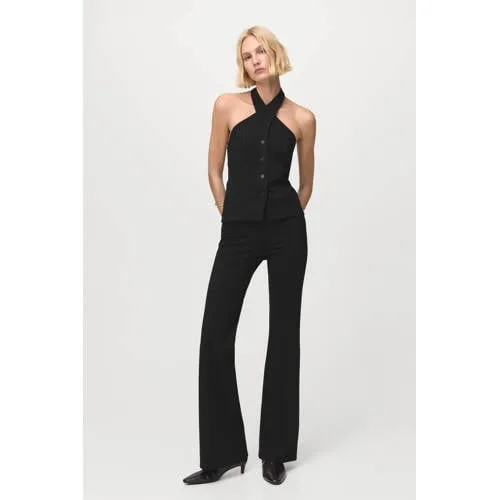 Dit Mango gilet dames halterkraag geeft jouw outfit een verzorgd en modern accent. Het mouwloze gilet heeft een effen ontwerp en een halterkraag die de schouders mooi vrij laat. De knoopsluiting aan de voorkant zorgt voor een nette afwerking, terwijl de gladde stof prettig op de huid voelt. Dankzij de combinatie van viscose, polyester en elastomeer sluit het gilet soepel aan en behoudt het goed zijn vorm tijdens het dragen.Stijlvolle details en draagcomfort Mouwloos gilet met halterkraag voor een open schouderlijn Effen kleur die gemakkelijk te combineren is met verschillende kledingstukken Knoopsluiting aan de voorkant voor een verzorgde en stabiele pasvorm Gemaakt van 65 procent viscose, 31 procent polyester en vier procent elastomeer Lichte stretch in de stof voor extra comfort bij beweging Zonder zakken voor een strak en rustig silhouetVeelzijdig in gebruiksmomentenMet dit gilet creëer je snel een geklede look voor kantoor of een etentje. Draag het over een top of blouse voor extra gelaagdheid of combineer het met een bijpassende broek voor een set die vanzelf overzichtelijk oogt. Ook op een jeans of korte broek geeft het gilet direct meer structuur aan je outfit.De signatuur van MangoMango staat voor toegankelijke mode met een stijlvolle en actuele uitstraling. Het merk focust op goed doordachte pasvormen en moderne lijnen, zodat elk ontwerp er verzorgd uitziet en prettig draagt. Met dit gilet voeg je een betrouwbaar stijlelement toe waar je vaak naar zult grijpen.Een gilet dat moeiteloos aansluit bij jouw dagelijkse en meer geklede momenten.