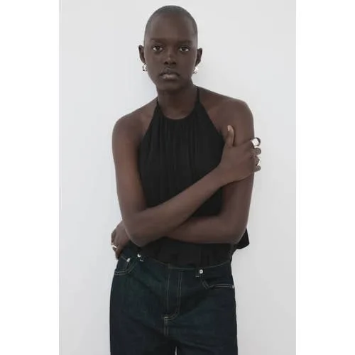 Deze zwarte body top voor dames van Mango is een basic voor dagen waarop je top goed op zijn plaats moet blijven zitten, zonder dat hij uit je rok of broek kruipt. Het getailleerde ontwerp sluit nauw aan, terwijl de halternek je schouders vrij laat voor een open, vrouwelijke look. De soepele stof met stretch beweegt met je mee en dankzij de binnenvoering tekent de body minder snel af.Details die het verschil maken Getailleerd model dat nauw aansluit rond het bovenlichaam Halternek voor een open schouderpartij en een mooie halslijn Mouwloos ontwerp, geschikt voor lente en zomer Clipsluiting aan de onderkant voor praktisch aan- en uittrekken Met binnenvoering voor extra comfort en minder doorschijnen Stretch door het elastaangehalte voor een aansluitende pasvorm Effen zwarte kleur, goed te combineren met verschillende outfits Alleen online verkrijgbaarVeelzijdig te stylen bodyOverdag combineer je deze body met een high waist jeans en sneakers voor een casual look. Voor een avondje uit draag je de body met een rok of een nette broek en hakken. Doordat de body strak in de taille blijft zitten, blijft je outfit netjes zitten.Mango: eigentijdse stijl voor elke dagMango biedt toegankelijke mode met een moderne, vrouwelijke uitstraling. De collecties spelen in op de nieuwste trends en zijn geschikt voor dagelijks gebruik. Met deze body voeg je een item toe aan je kast dat past bij werk, vrije tijd en een etentje.Een basisstuk waar je vaak naar teruggrijpt.