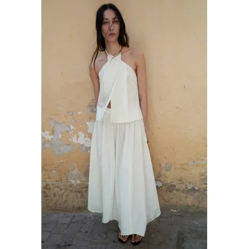 Deze gestreepte haltertop van katoen van Mango is een luchtige basic voor zomerse dagen. De top is gemaakt van een zachte stof met 87% katoen en 13% polyamide en voelt prettig aan op de huid. De ecru kleur met fijne krijtstrepen geeft een rustige, moderne uitstraling die makkelijk te combineren is met je garderobe. Door de rechte snit valt de top losjes langs het lichaam.Details die het verschil maken Rechte snit voor een ontspannen pasvorm Halternek met sluiting in de hals voor een mooie open schouderlijn Mouwloos model met smalle bandjes, ideaal voor warme zomerdagen Ecru basis met subtiele krijtstreep print voor een rustige uitstraling Open rug en open shoulder details voor een luchtig effect Overslag detail aan de bovenkant geeft extra vorm aan het model Gemaakt van 87% katoen / 13% polyamide voor een soepele, comfortabele touchGemakkelijk te stylen in het dagelijks levenDeze top past goed bij een hoge jeans of een wijde linnen broek voor een dagelijkse stijl. In combinatie met een korte rok en sandalen ontstaat een zomerse outfit voor terrasje, citytrip of strandboulevard. Door de neutrale ecru kleur sluit de top aan bij zowel lichte als donkere onderstukken.Mango: eigentijdse mode voor elke dagMango staat bekend om moderne collecties die inspelen op trends, maar toch draagbaar blijven in het dagelijks leven. Met aandacht voor pasvorm en materialen biedt het merk kleding die je makkelijk combineert en vaak uit de kast pakt. Deze haltertop past daar goed bij en kan dienen als basis voor je zomergarderobe.Een luchtig, gestreept bovenstuk dat je eenvoudig meeneemt van doordeweekse dag naar zonnige weekendplannen.