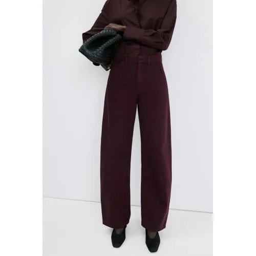 Geef je denimcollectie een update met deze Mango dames jeans in donkerrood. De ballonvormige pijpen en hoge taille geven een moderne uitstraling, terwijl de lange lengte je benen optisch verlengt. Dankzij de stevige, denimachtige stof van 100% katoen voelt de jeans robuust aan en blijft de pasvorm goed.Donkerrode ballonjeans met wide leg pasvorm Gemaakt van 100% katoen, voor een stevige stof die prettig aanvoelt op de huid Ballonontwerp met wide leg pijpen voor een losse, rechtvallende look Hoge taille die mooi aansluit en je middel accentueert Vijf zakken en riemlussen voor de herkenbare vijf-pocket jeansstijl Rits- en knoopsluiting voor een betrouwbare, klassieke afwerking Effen donkerrode kleur, gemakkelijk te combineren met basics en statement itemsZo draag je deze donkerrode wide legDeze lange wide leg jeans valt ruim om het been en geeft extra bewegingsvrijheid bij heupen en bovenbenen. Ideaal voor dagen waarop je comfort wilt combineren met een opvallende kleur. In combinatie met een eenvoudig T-shirt of een nette blouse creëer je snel een verzorgde outfit.Mango: eigentijdse mode voor elke dagMango staat bekend om modieuze collecties met een toegankelijke stijl. De focus ligt op actuele pasvormen, draagbare kleuren en betrouwbare basics die je lang in je garderobe houdt. Met deze jeans haal je een tijdloos item in huis dat past binnen een moderne, veelzijdige kledingkast.Een karaktervolle basisjeans die je dagelijks kunt dragen en eenvoudig aanpast aan jouw stijl.