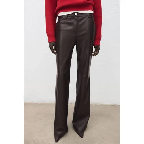 - Bij wehkamp.nl kun je Mango imitatieleren regularwaist flared broek donkerbruin kopen voor slechts €29,99