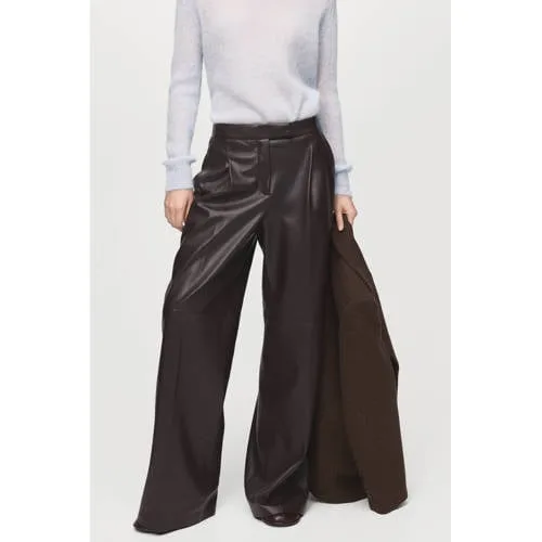 Mango imitatieleren Wide leg regular waist broek donkerbruin