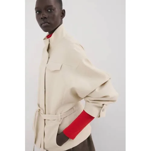 Geef je dagelijkse look een modern accent met deze beige jas met hoge kraag en ceintuur van Mango. De korte lengte en oversized pasvorm geven een ontspannen silhouet, terwijl de opstaande kraag en strakke belijning juist voor een verzorgde uitstraling zorgen. Ideaal als tussenjas voor het voorjaar, over een jeans of een nette broek.Verfijnde details voor elke dag Gemaakt van 97% katoen en 3% elastomeer, voelt de stof stevig maar soepel aan Voering van 100% viscose voor een gladde binnenkant die prettig over je kleding valt Opstaande kraag en hoge hals geven extra bedekking en een moderne look Lange ballonmouwen met manchetten met drukknoop voor een subtiel volumeeffect Korte lengte en oversized pasvorm voor een eigentijdse, relaxte stijl Ceintuur in badjas-stijl om je taille te accentueren of losjes te knopen Blinde ritssluiting aan de voorkant voor een rustige, minimalistische voorkant Borstzak, klepzakken en zijzakken voor een praktische en nette afwerkingEen lichte tussenjas voor het lenteseizoenDeze jas past goed bij het wisselvallige weer in de lente. Draag hem open over een T-shirt als het zacht is of gesloten met ceintuur op koelere dagen. De effen beige kleur combineert eenvoudig met neutrale tinten en denim.Mango: eigentijdse mode met een moderne stijlMango staat bekend om collecties die trends vertalen naar draagbare mode voor elke dag. Met aandacht voor silhouet, detail en materiaal biedt het merk een brede keuze aan kledingstukken die je makkelijk combineert tot een complete garderobe.Een comfortabele en moderne jas die je dagelijkse outfits op een subtiele manier verfijnt.