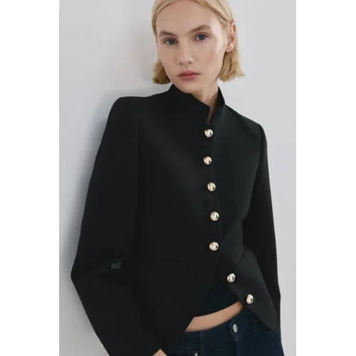 Stap moeiteloos van werk naar weekend met deze zwarte Mango dames jas. Het rechte ontwerp geeft een rustige, moderne uitstraling die makkelijk te combineren is met de rest van je garderobe. De opstaande kraag en de nette afwerking maken dit jasje geschikt voor zowel een casual outfit als een meer geklede look in het voorjaar.Verfijnde details voor elke dag Recht model voor een tijdloze, cleane uitstraling Opstaande kraag voor een moderne, verzorgde look rond de hals Lange mouwen met knoopmanchetten voor een nette afwerking Knopensluiting aan de voorkant, handig om open of dicht te dragen Twee paspelzakken aan de voorkant om kleine essentials bij de hand te houden Met binnenvoering voor extra comfort tijdens wisselvallige lentedagen Geschikt als jasje en tussenjas, praktisch tussen seizoenen in Verkrijgbaar in standaardmaten en Plus, zodat je een pasvorm kunt kiezen die bij je lichaam aansluitEen licht jasje voor het lenteseizoenDeze zwarte jas is een praktische keuze voor de lente en frisse dagen. Draag het jasje over een blouse naar kantoor of over een T-shirt tijdens een ontspannen dag in de stad. De rustige kleur en het rechte model maken stylen eenvoudig.Mango: eigentijdse mode met een nette afwerkingMango staat bekend om modieuze collecties met een toegankelijke uitstraling. De focus ligt op actuele pasvormen en doordachte details, zodat je kledingkast bestaat uit items die je vaak en lang draagt. Deze jas sluit daar goed op aan, als vaste basis voor veel verschillende outfits.Een tussenlaag die je garderobe rustig, modern en makkelijk combineerbaar houdt.