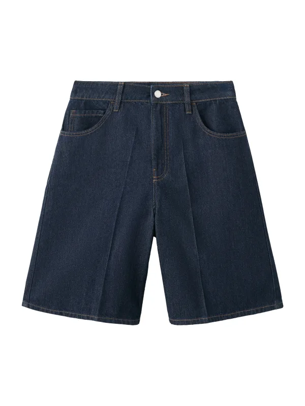 Design: Gevoerde zoom/rand, Ritssluiting, 5-pocket-style; Type sluiting: Ritssluiting; Materiaal: Denim; Motief: Effen; Details: Plooien; Extra's: Contrasterende naden, Vaste grip, Riemlussen; Wassing: Rinsed/dark washed; Lengte: Knielengte; Pasvorm: Loosefit; Taillehoogte: High waist