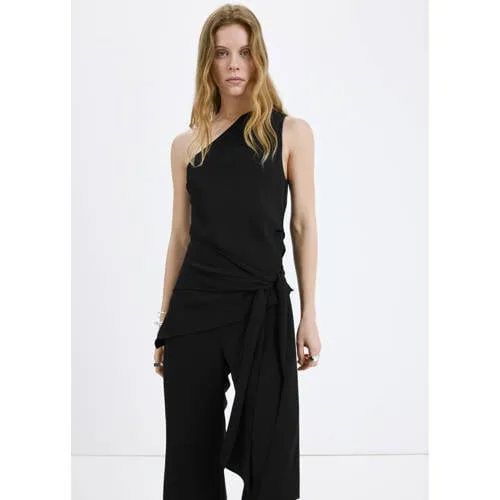 Deze lange, zwarte one-shoulder jumpsuit voor dames van Mango is ontworpen voor speciale momenten. Het asymmetrische ontwerp met één schouderlijn geeft een moderne uitstraling, terwijl de rechte snit rustig en verfijnd oogt. Door de verstelbare strik in de taille kun je het model naar wens laten aansluiten. De soepele stof is volledig gevoerd, wat zorgt voor een nette en comfortabele look tijdens feestelijke gelegenheden.Details die je partylook versterken Lange jumpsuit met rechte pijpen voor een elegant, gestroomlijnd silhouet Asymmetrisch one-shoulder ontwerp dat de schouders subtiel accentueert Verstelbare strik in de taille voor een vrouwelijke, verstelbare pasvorm Zijritssluiting zodat de bovenkant mooi aansluit en rustig oogt Effen zwarte kleur, makkelijk te combineren met hakken en sieraden Met voering voor extra draagcomfort en een verzorgd geheel Zonder zakken waardoor de lijnen mooi strak blijven Ook verkrijgbaar in rood, deze kleur is exclusief online Onderdeel van de feest- en evenementencollectie van MangoKlaar voor feest, van receptie tot dinerDeze jumpsuit past goed bij gelegenheden waarbij je net wat meer aangekleed wilt zijn. Denk aan een bruiloftsgast-look, een diner of een feestelijke borrel. Met hoge sandalen en een kleine clutch heb je in één keer een complete outfit. In het voorjaar kan er eenvoudig een korte blazer of sjaal overheen.Mango: moderne mode met een eigentijdse twistMango staat bekend om modische items met een heldere, eigentijdse stijl. De collecties volgen de trends, maar blijven tegelijk draagbaar voor elke dag en voor speciale momenten. Met aandacht voor pasvorm en afwerking biedt Mango kleding waarmee je eenvoudig een verzorgde look samenstelt.Een veelzijdige keuze voor wie met één kledingstuk direct klaar wil zijn voor een feestelijke dag of avond.