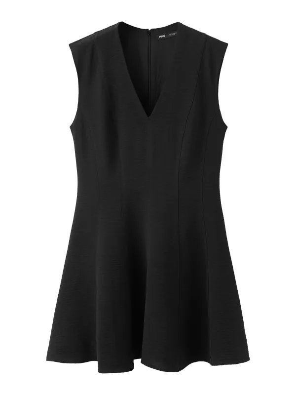 Deze korte zwarte jurk van Mango is een moderne versie van de klassieke little black dress. Het rechte model met V-hals en brede bandjes sluit mooi aan zonder strak te zitten. De ruches langs de zoom geven een speels effect, terwijl de effen zwarte kleur zorgt voor een rustige, tijdloze uitstraling. Door de binnenvoering tekent de stof niet af en voelt de jurk prettig aan op de huid.Details die het verschil maken Kort ontwerp met middelhoge lengte, ideaal voor zomerse dagen of avonden Recht model dat soepel langs het lichaam valt V-hals en brede bandjes voor een open, vrouwelijke bovenkant Ruche zoom onderaan voor een subtiele, zwierige look Ritssluiting aan de achterkant voor makkelijk aan- en uittrekken Volledig gevoerd voor extra comfort en een mooie, gladde fit Effen zwarte kleur, makkelijk te combineren met je favoriete schoenen en tasVan werkdag tot zomerse avondDeze jurk past goed in een dagelijkse garderobe. Met sandalen en een lichte cardigan is hij geschikt voor een gewone dag. Met hakken en opvallende sieraden ontstaat in één keer een feestelijke look. De mouwloze snit maakt de jurk extra fijn voor de zomer.Mango: eigentijdse stijlMango staat bekend om moderne mode met een elegante, toegankelijke uitstraling. De collecties volgen de trends, maar blijven tegelijk draagbaar voor elke dag. Je kiest met Mango voor kleding die prettig zit, er verzorgd uitziet en makkelijk te stylen is met de items die je al in je kast hebt.Een veelzijdige little black dress waar je het hele seizoen plezier van hebt.