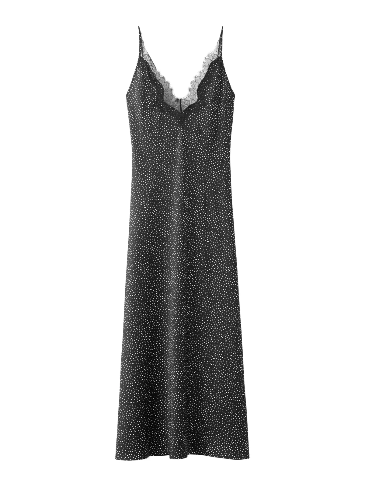 Design: Gevoerde zoom/rand, Zoom/rand met boord, Diepe snit/decolleté; Halstype: V-hals; Motief: Gestippeld; Soort bandjes: Spaghettibandjes; Details: Kant; Extra's: Verstelbare bandjes, All-over patroon, Voelt zacht aan; Lengte: 3/4 lengte; Snit: Uitlopend; Pasvorm: Normale pasvorm; Armlengte: Mouwloos