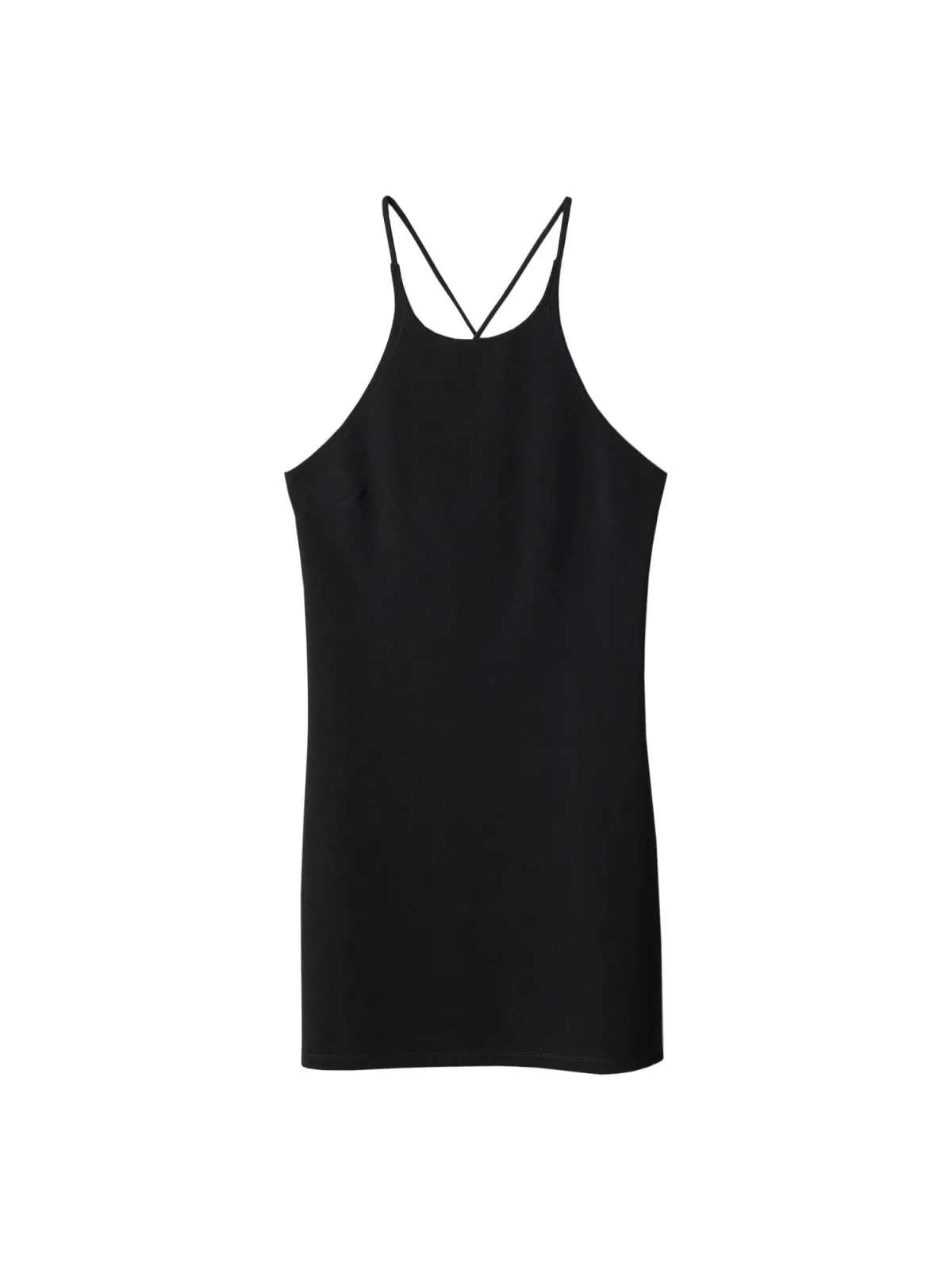Design: Rechte zoom, Getailleerd model, Uitgesneden rug; Halstype: Ronde hals; Motief: Effen; Soort bandjes: Spaghettibandjes; Extra's: Op staal naden; Lengte: Kort/mini; Pasvorm: Aansluitende pasvorm; Armlengte: Mouwloos