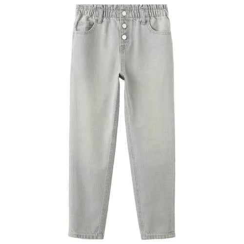 Deze Mango Kids barrel jeans is een comfortabele en stoere basis voor elke meidenoutfit. De grey denim kleur is makkelijk te combineren en de rechte pijpen geven een moderne uitstraling. Door de regular waist en het lange ontwerp valt de jeans mooi op de heup en langs het been, ideaal voor dagelijks gebruik naar school of in het weekend.Barrel fit met paperbag taille Barrel fit met rechte pasvorm voor een eigentijdse look Paperbag elastische taille met knoopsluiting om de taille voor extra comfort Regular waist taillehoogte, prettig om de hele dag te dragen Gemaakt van 100% katoen met een stevige denim structuur Vijf-pocketmodel met twee zijzakken, muntzakje en achterzakken Riemlussen in de taille voor het dragen van een favoriete riem Effen grey denim, makkelijk te stylen met T-shirts, truien en blousesPraktische jeans voor elke dagDeze meisjesjeans is gemaakt voor actief dagelijks gebruik. De katoenen denim voelt stevig aan en biedt genoeg bewegingsvrijheid tijdens spelen en rennen. De knoopsluiting en elastische paperbag taille maken het aan- en uittrekken eenvoudig, terwijl de lange pijpen goed aansluiten bij sneakers, laarzen of sandalen.Mango Kids voor moderne kidskledingMango Kids staat voor eigentijdse kinderkleding met heldere lijnen en doordachte pasvormen. De ontwerpen sluiten aan op de laatste trends, maar blijven makkelijk draagbaar in het dagelijks leven. Met deze jeans kies je voor een model dat zowel qua stijl als kwaliteit goed aansluit bij de garderobe van een kind.Een stevige, stijlvolle denim die elke dag weer klaarhangt voor nieuwe avonturen.